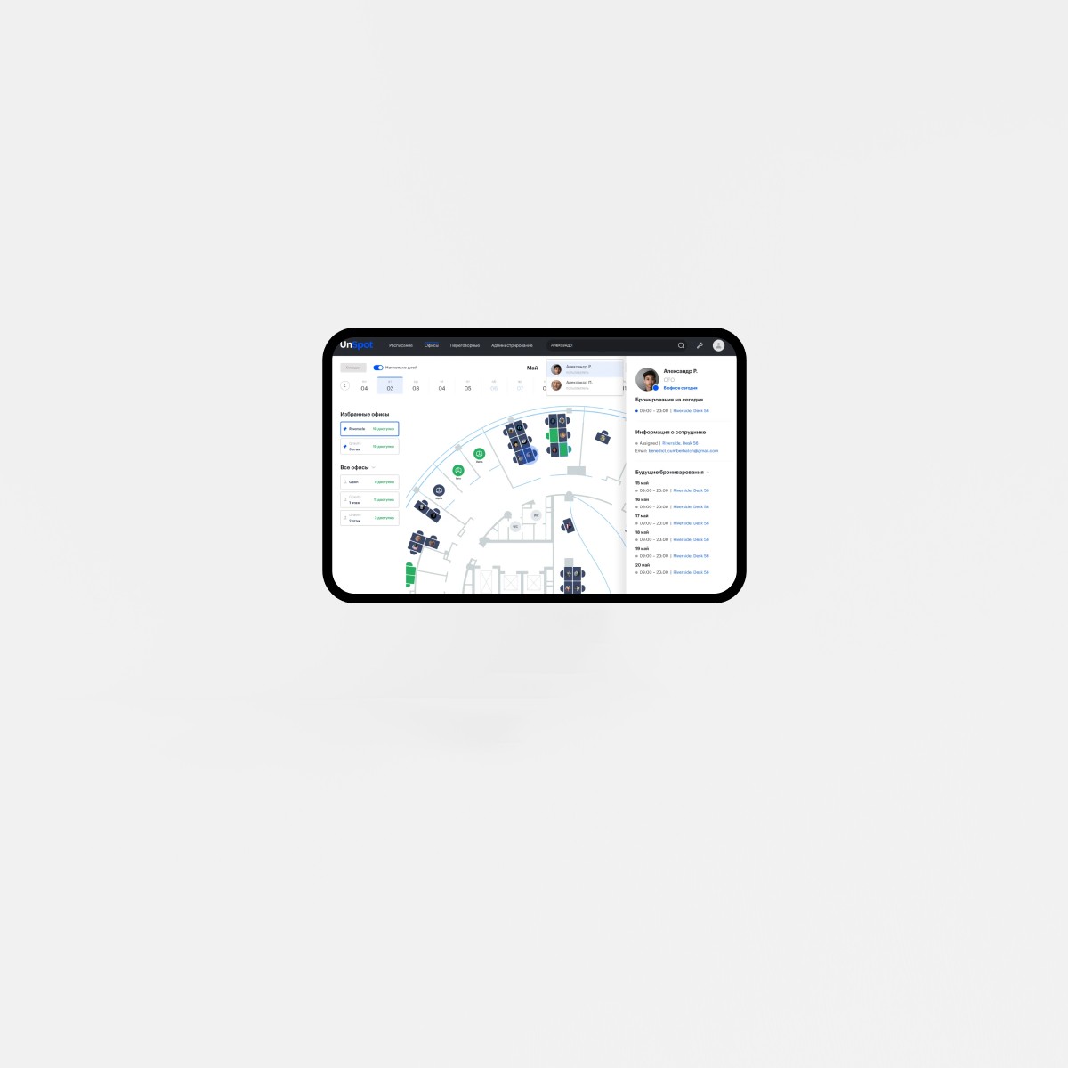 Сервис для бронирования сотрудниками рабочих мест и переговорных комнат в офисе компании.